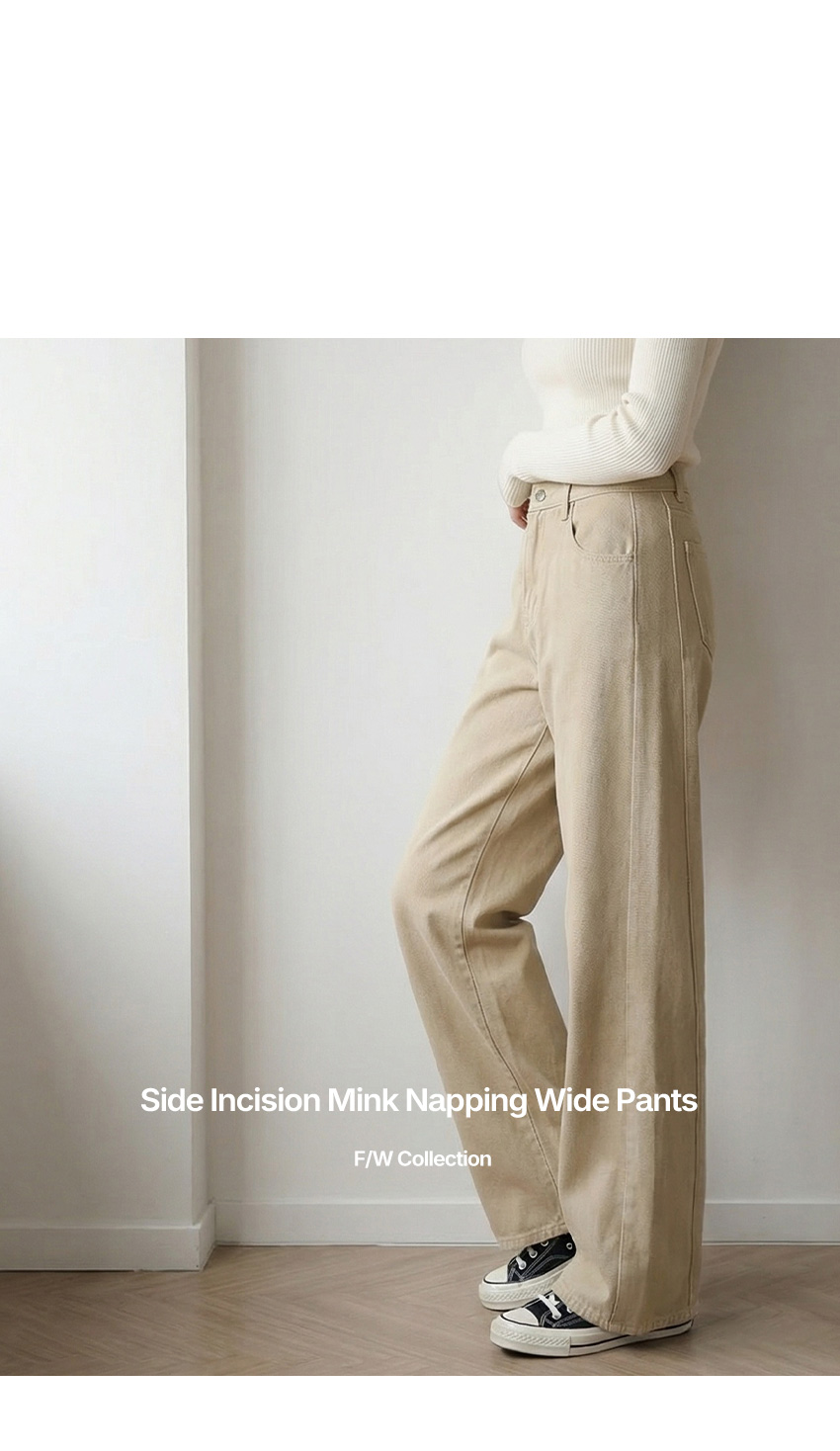 [3 type] 리오 사이드 절개 밍크기모 와이드 팬츠
