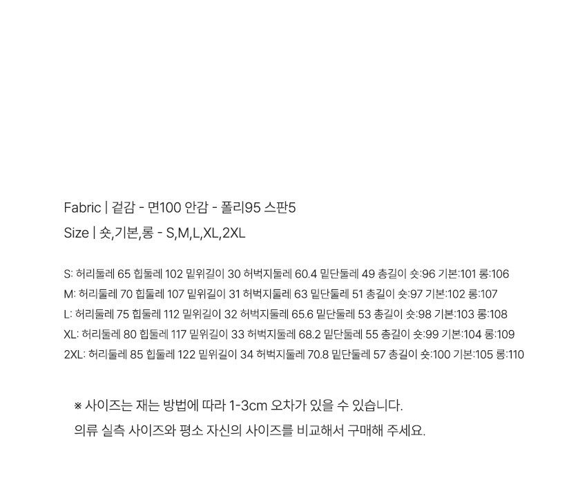 ※ 상품사이즈 치수는 재는 방법과 위치에 따라 1~3cm 오차가 있을 수 있습니다.