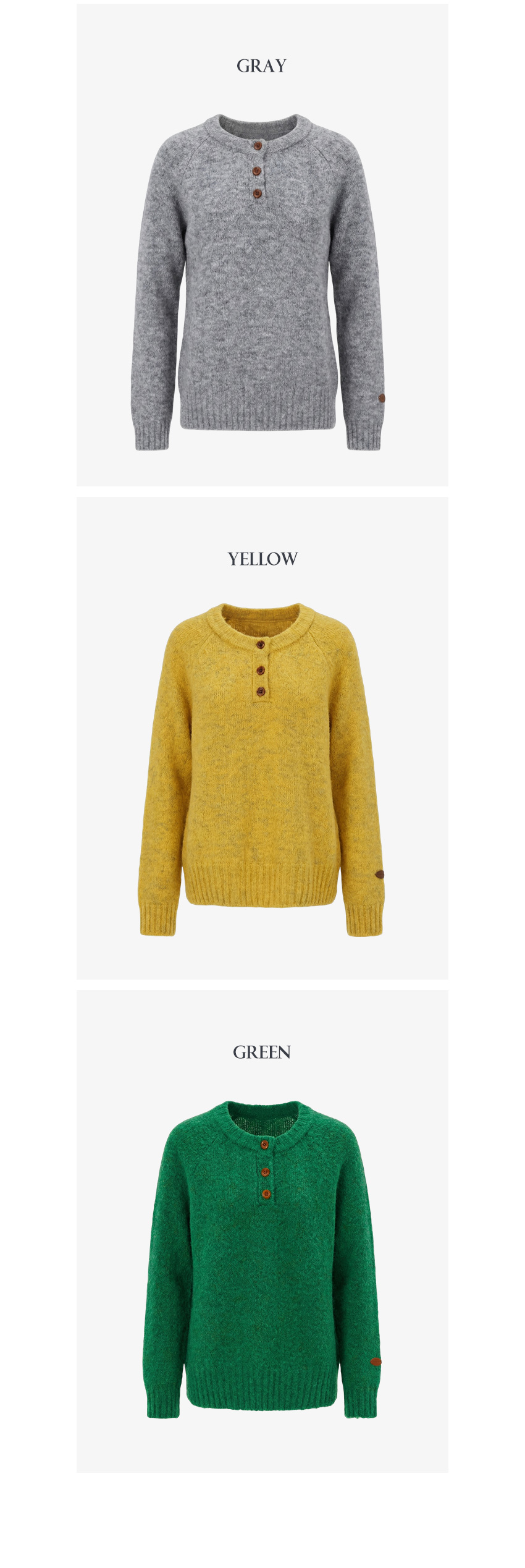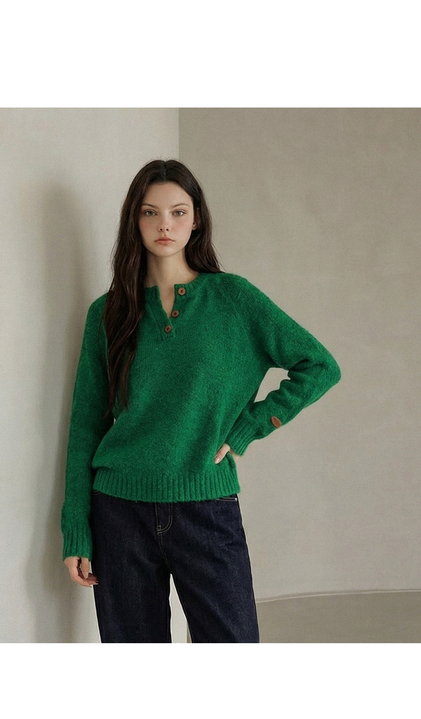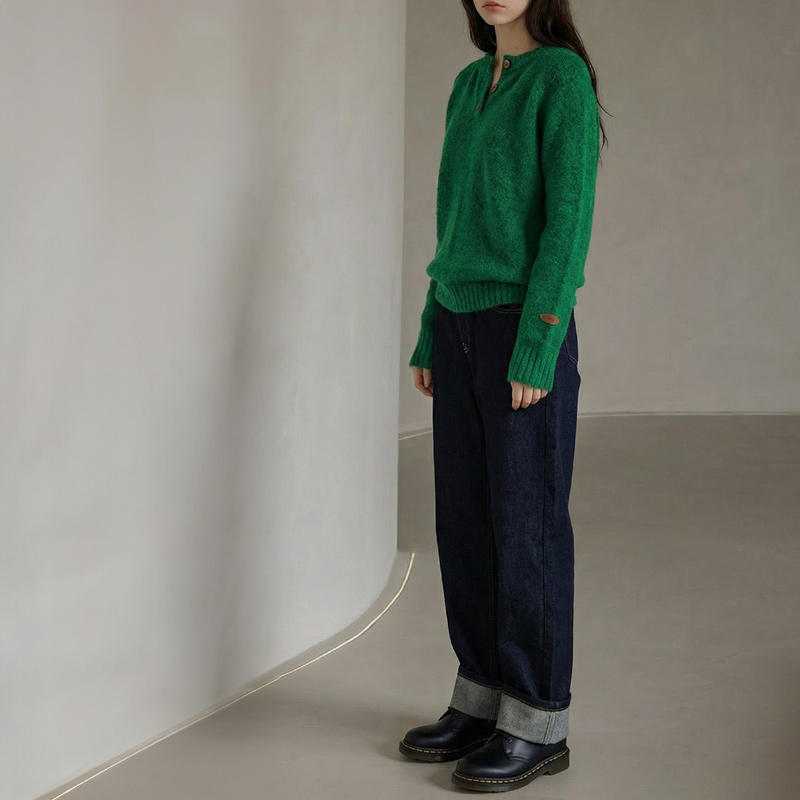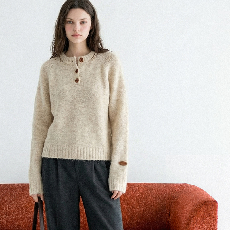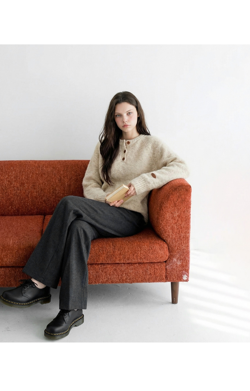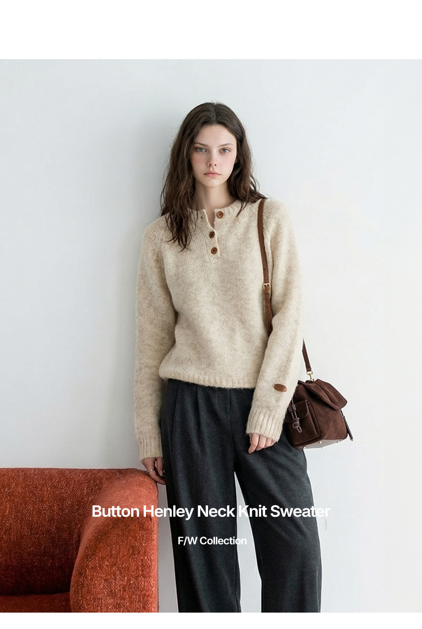 헨리넥 버튼 소매패치 니트