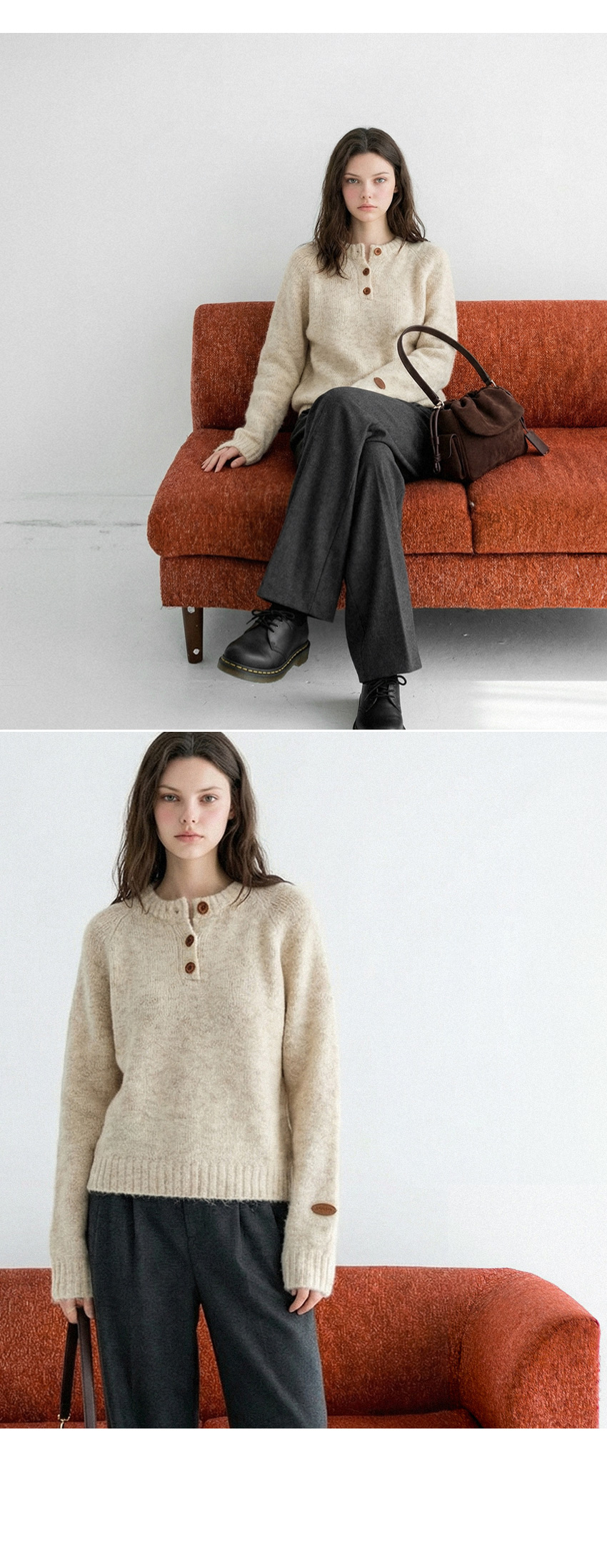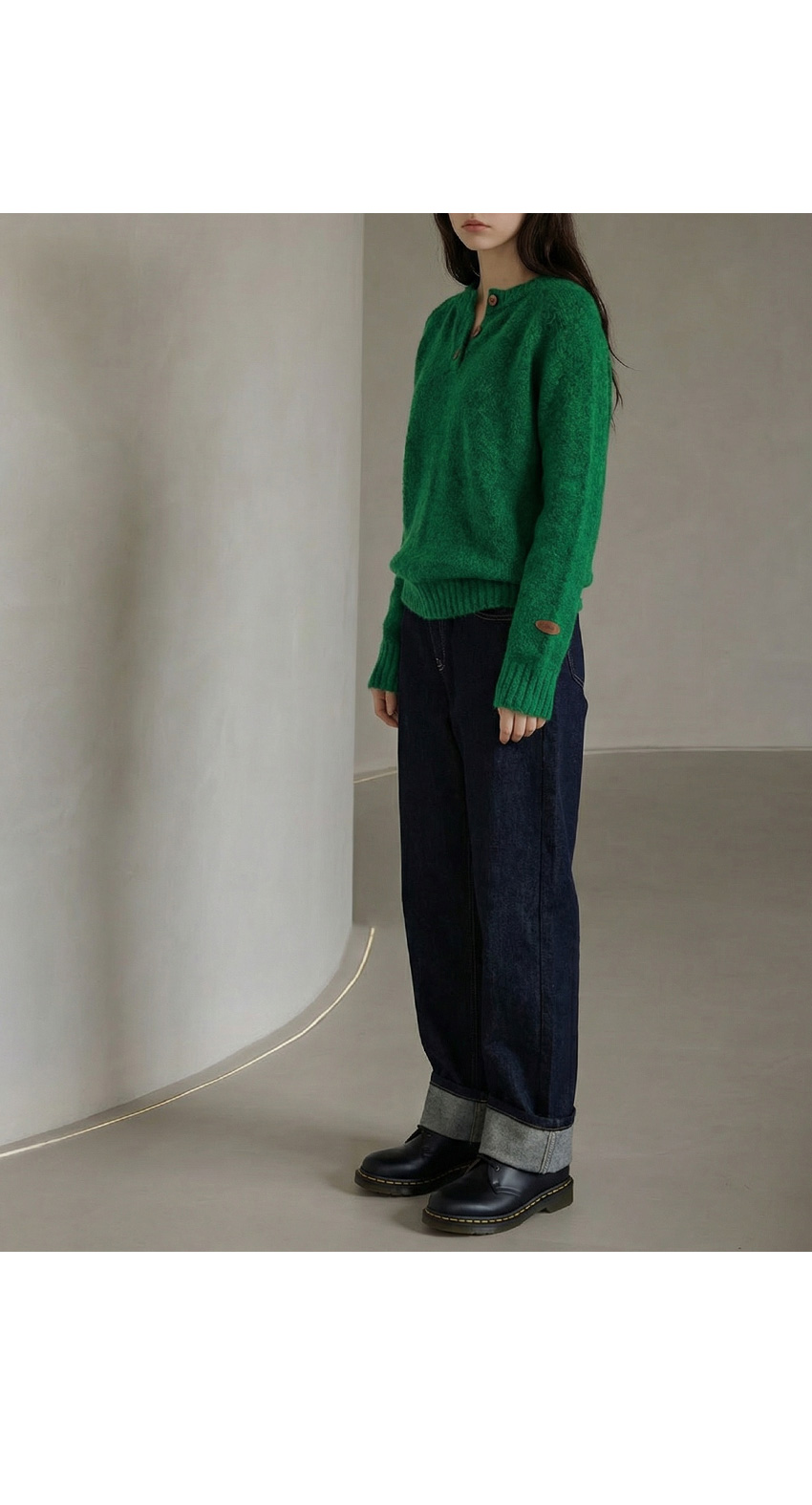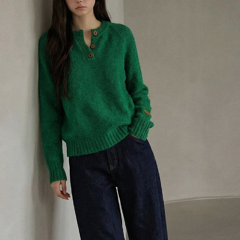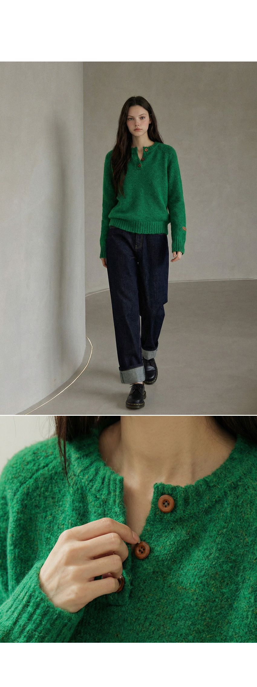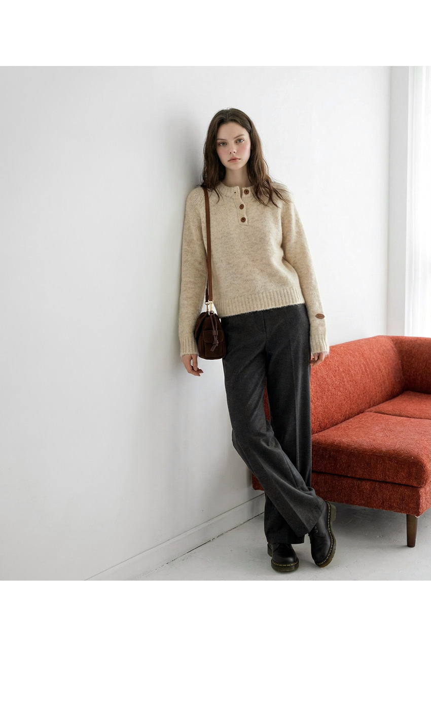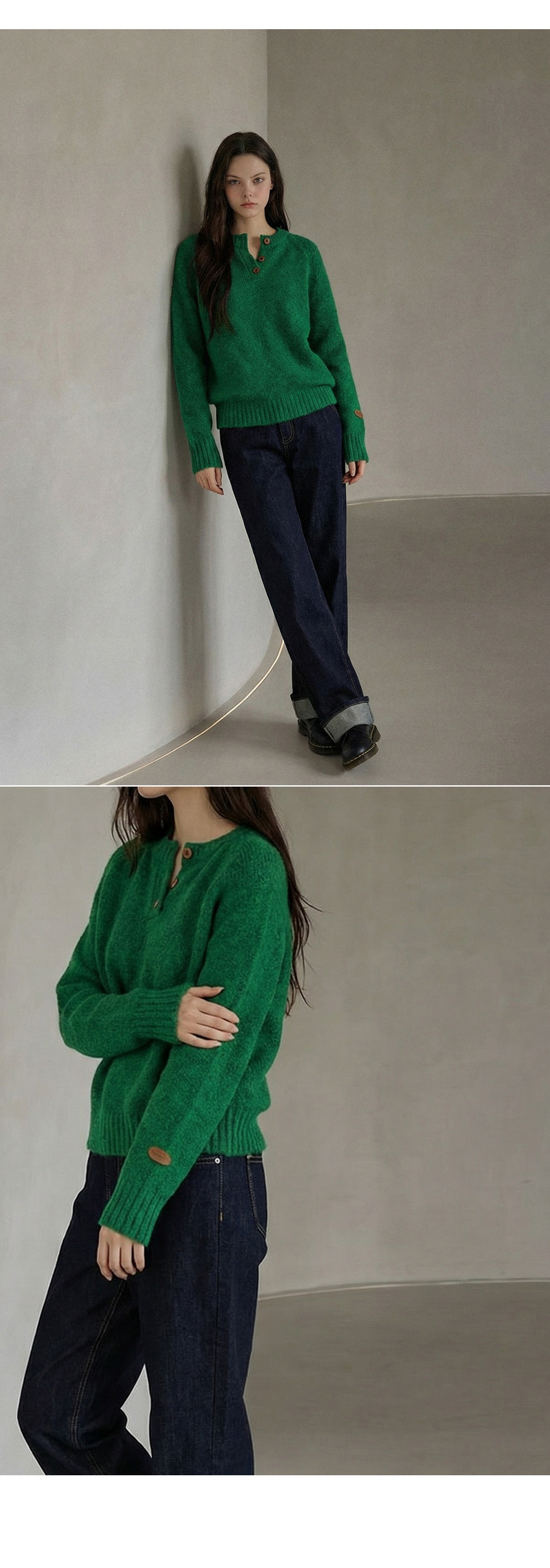 헨리넥 버튼 소매패치 니트