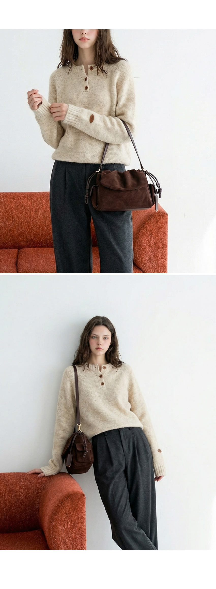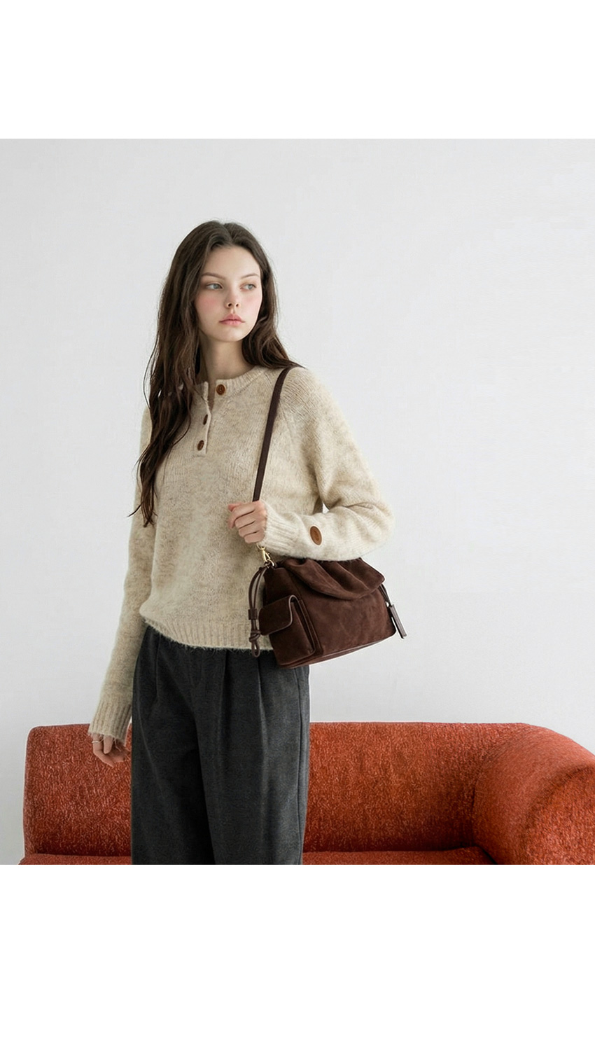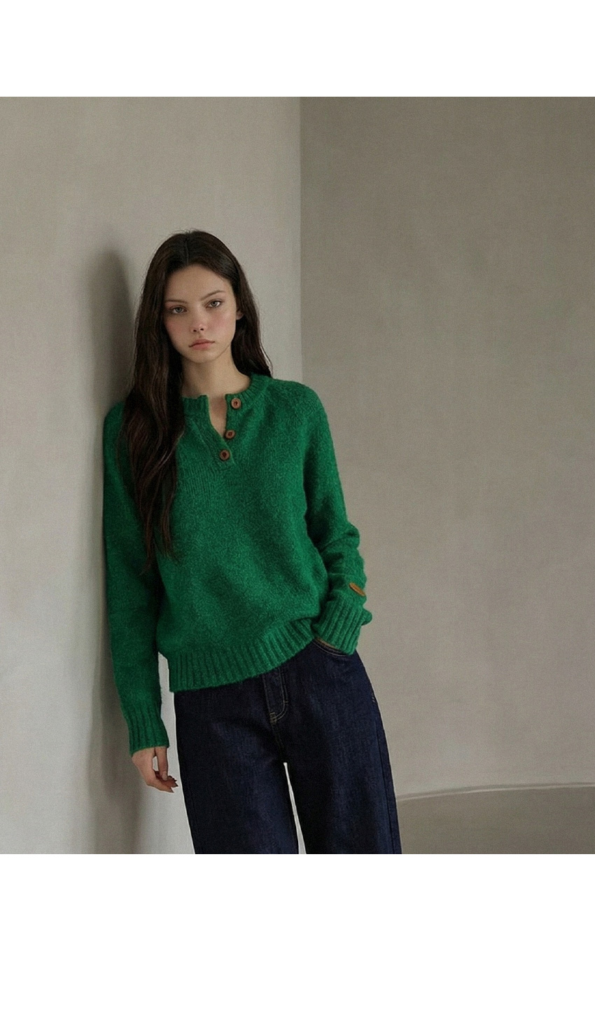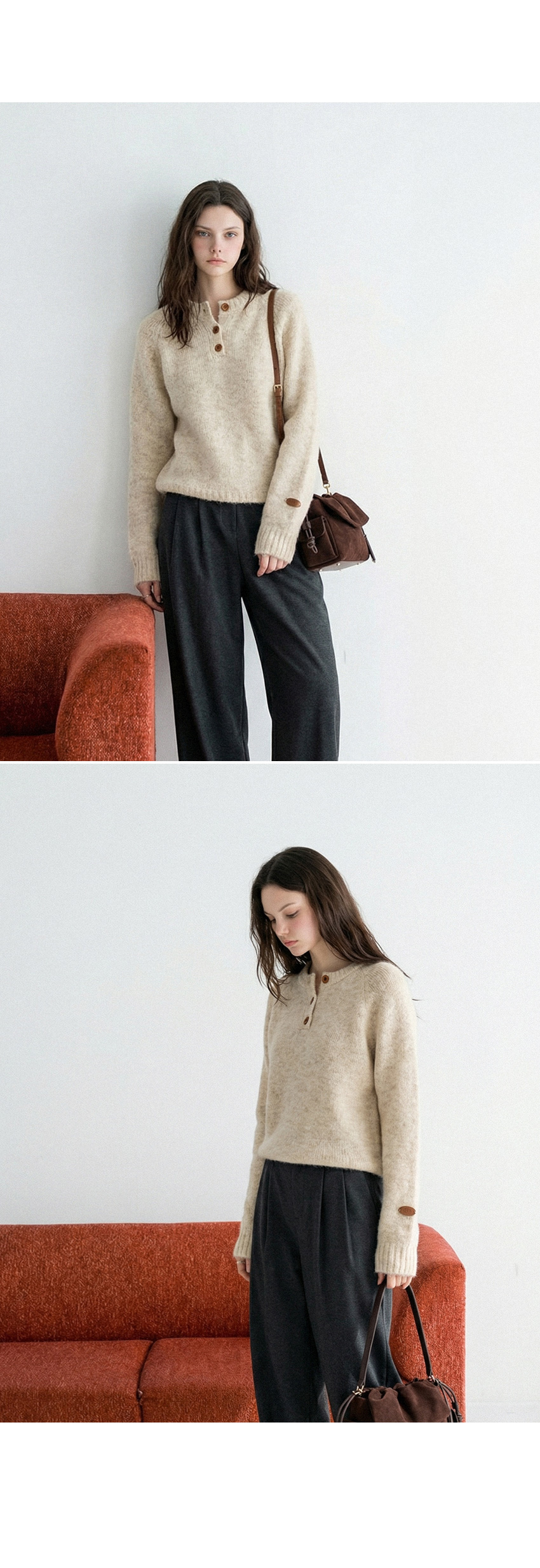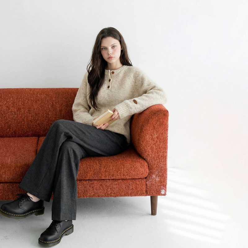 헨리넥 버튼 소매패치 니트