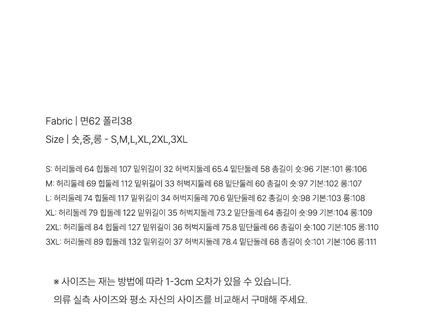 ※ 상품사이즈 치수는 재는 방법과 위치에 따라 1~3cm 오차가 있을 수 있습니다.