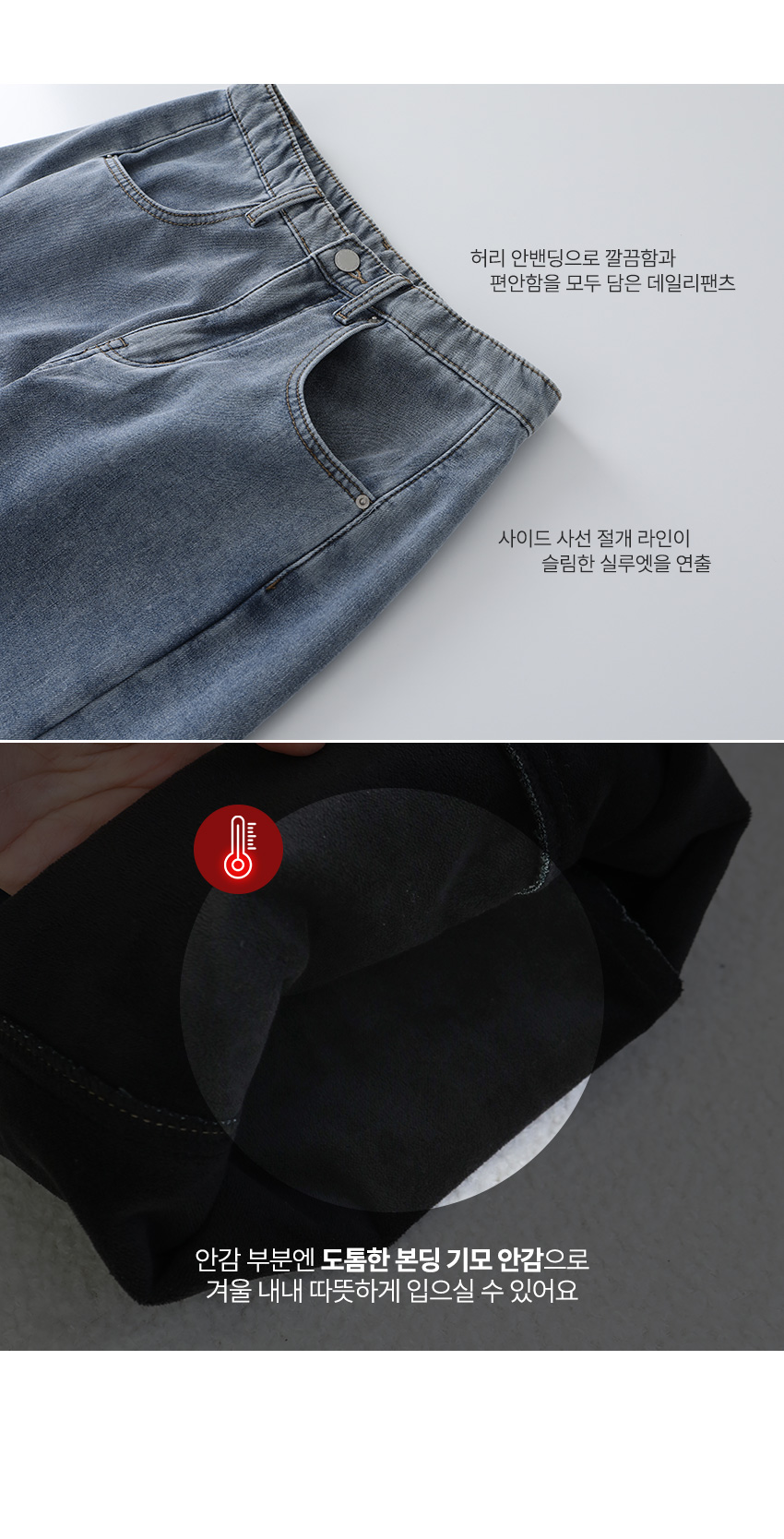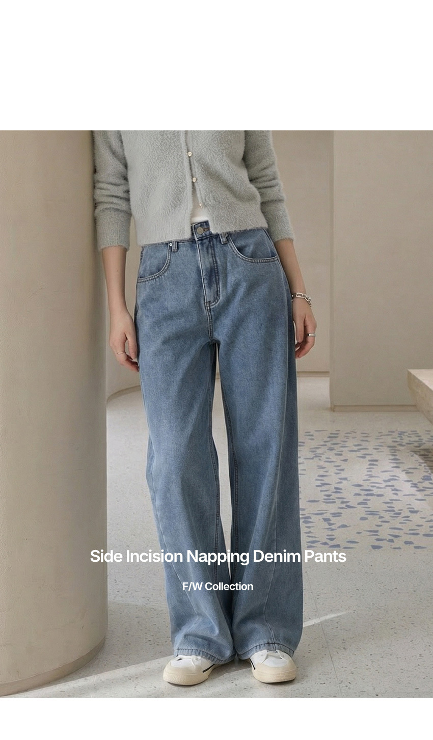 [3type] 노아 기모 사이드 절개 데님 팬츠