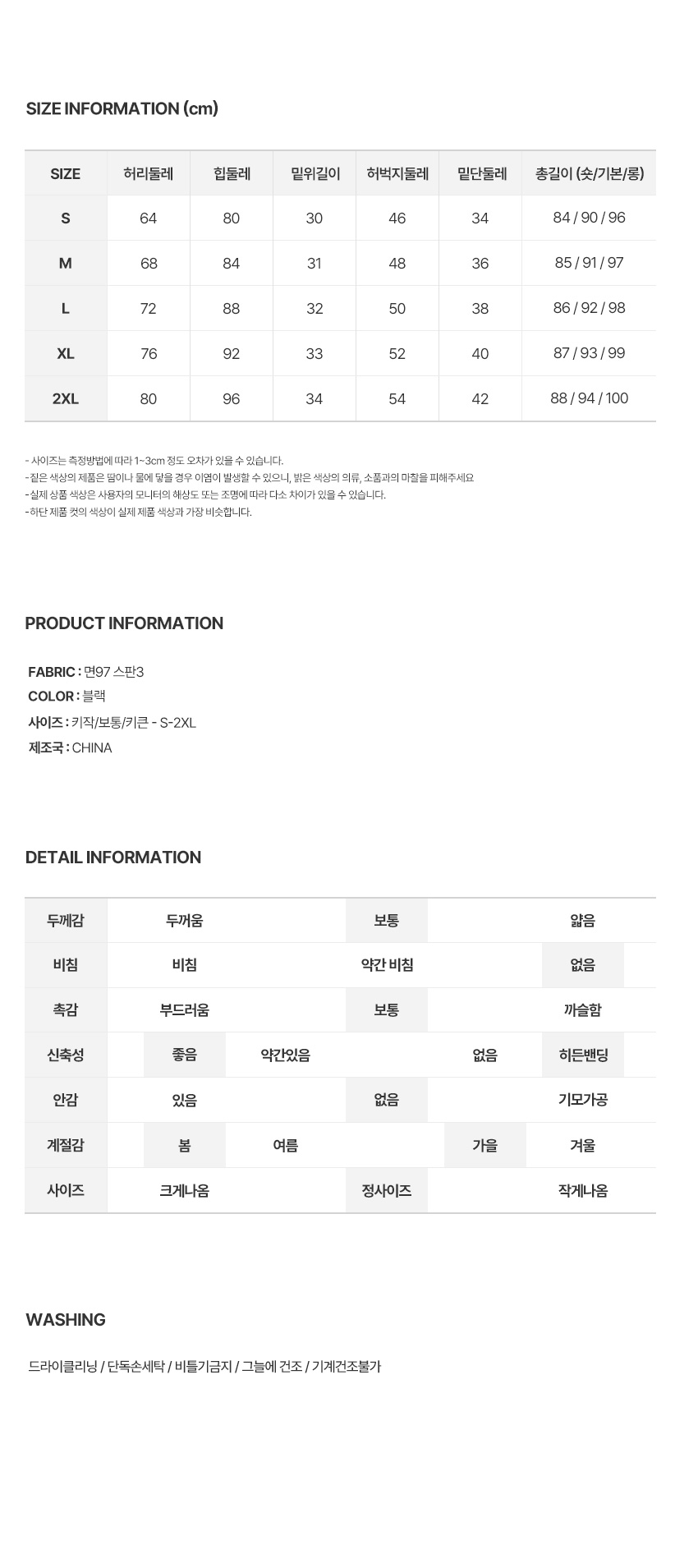 ※ 상품사이즈 치수는 재는 방법과 위치에 따라 1~3cm 오차가 있을 수 있습니다.