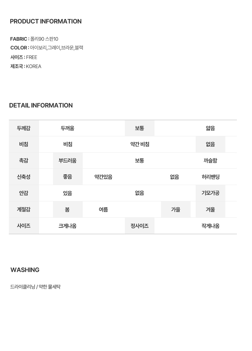 color 옵션 선택 아이보리 브라운 그레이 블랙