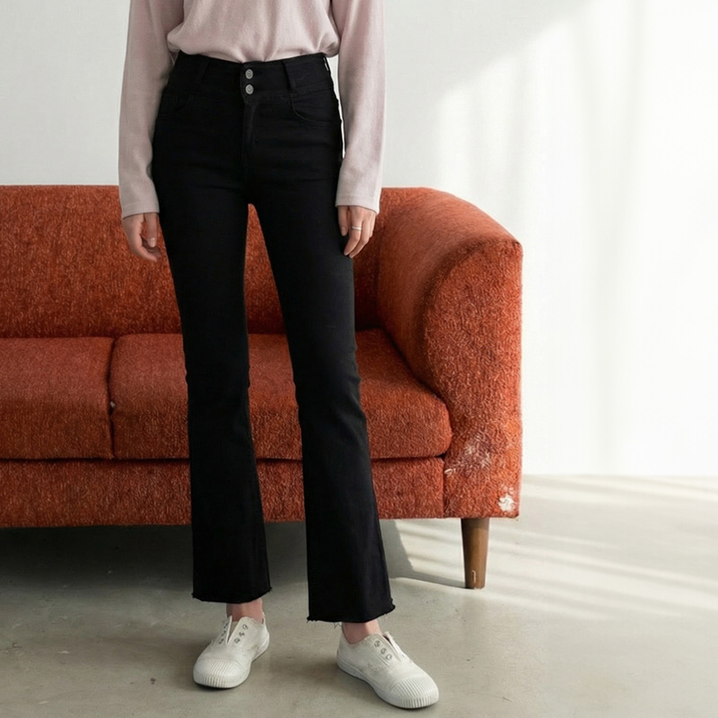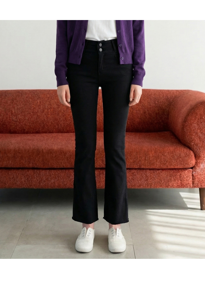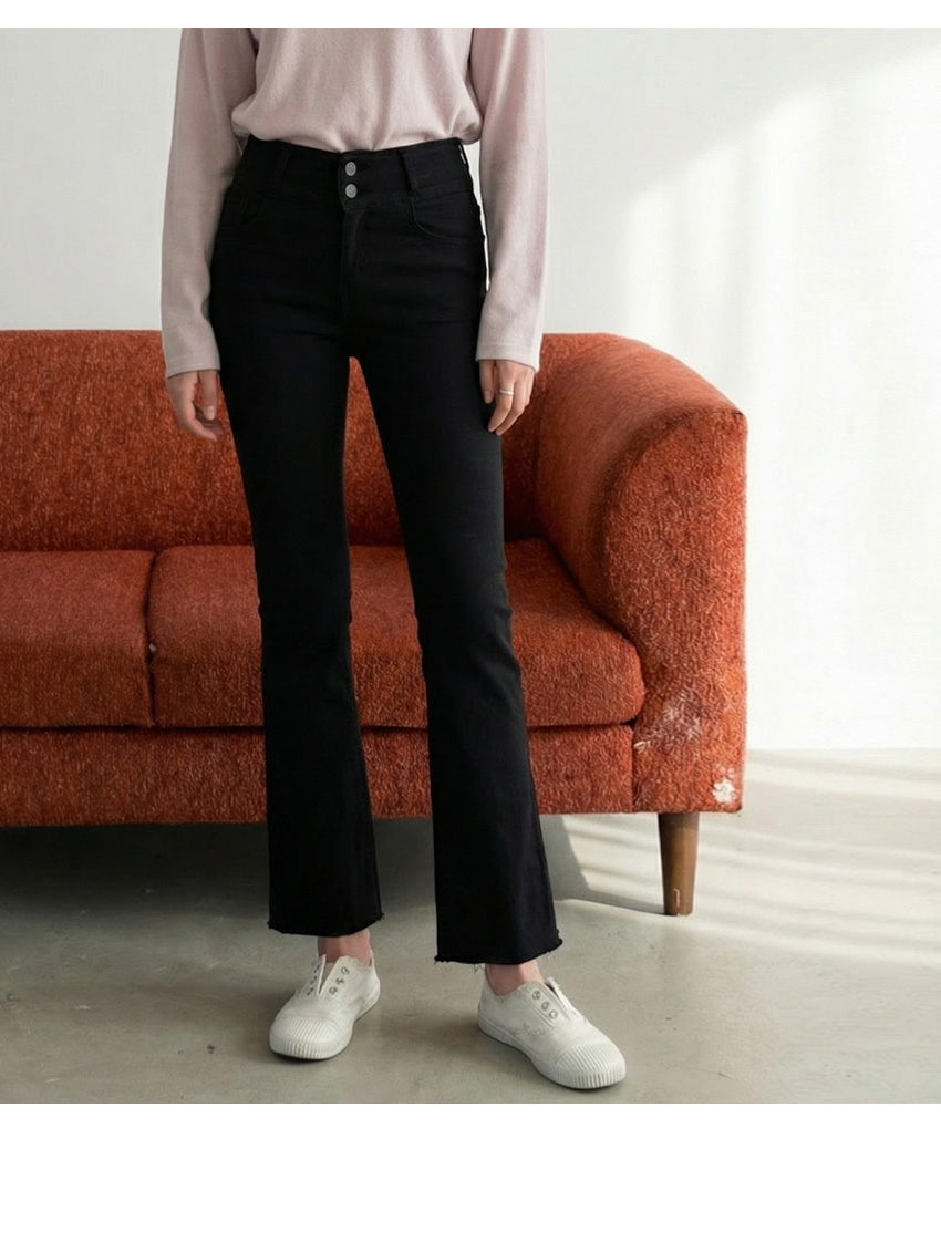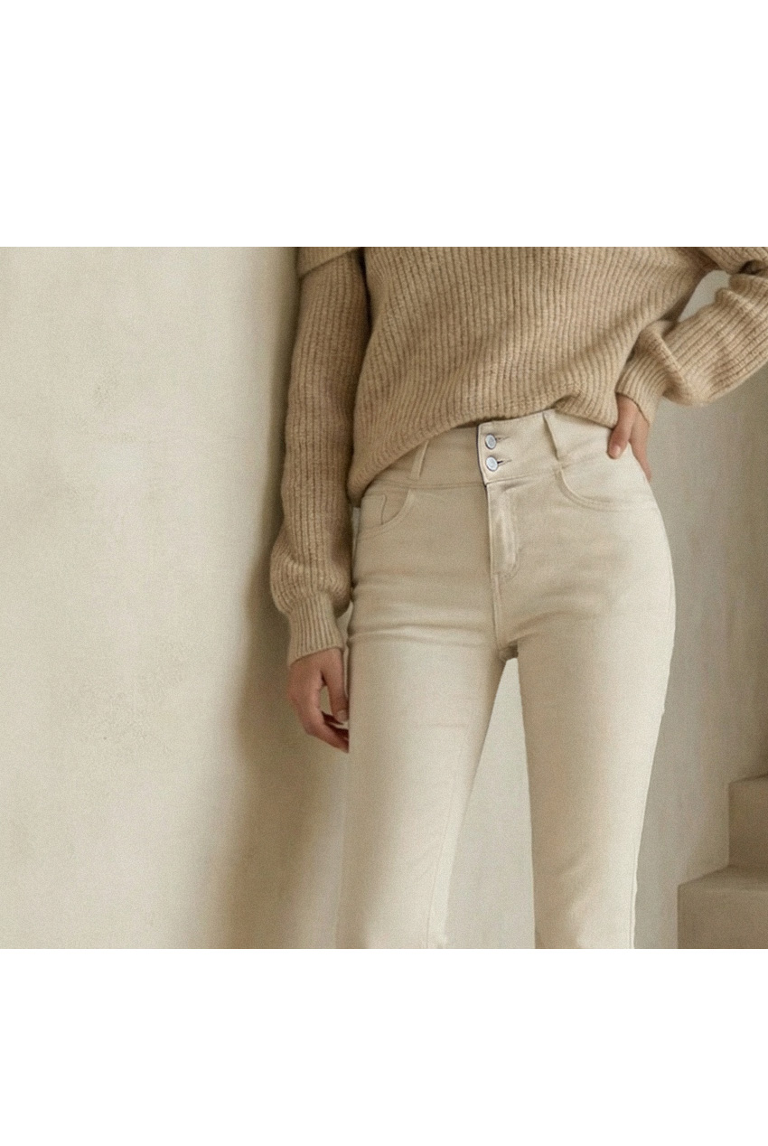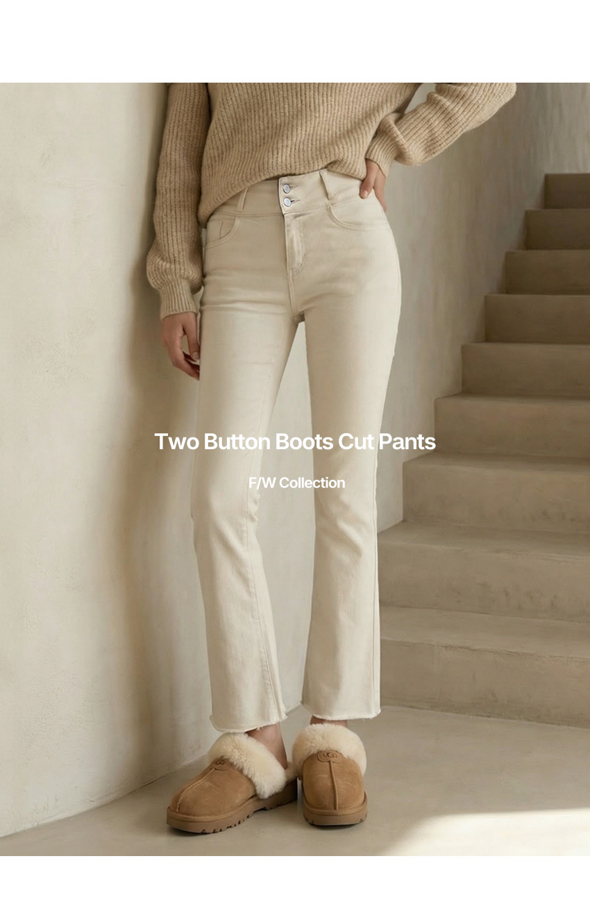 줄리아 투버튼 기모 세미부츠컷 팬츠