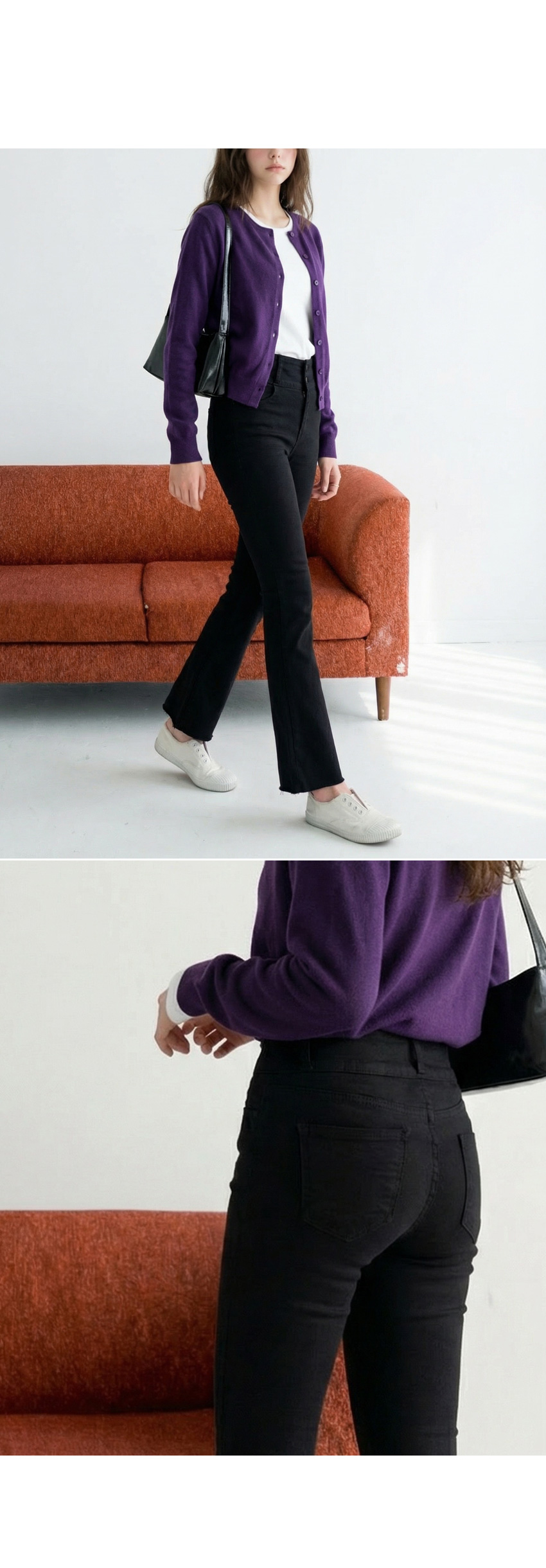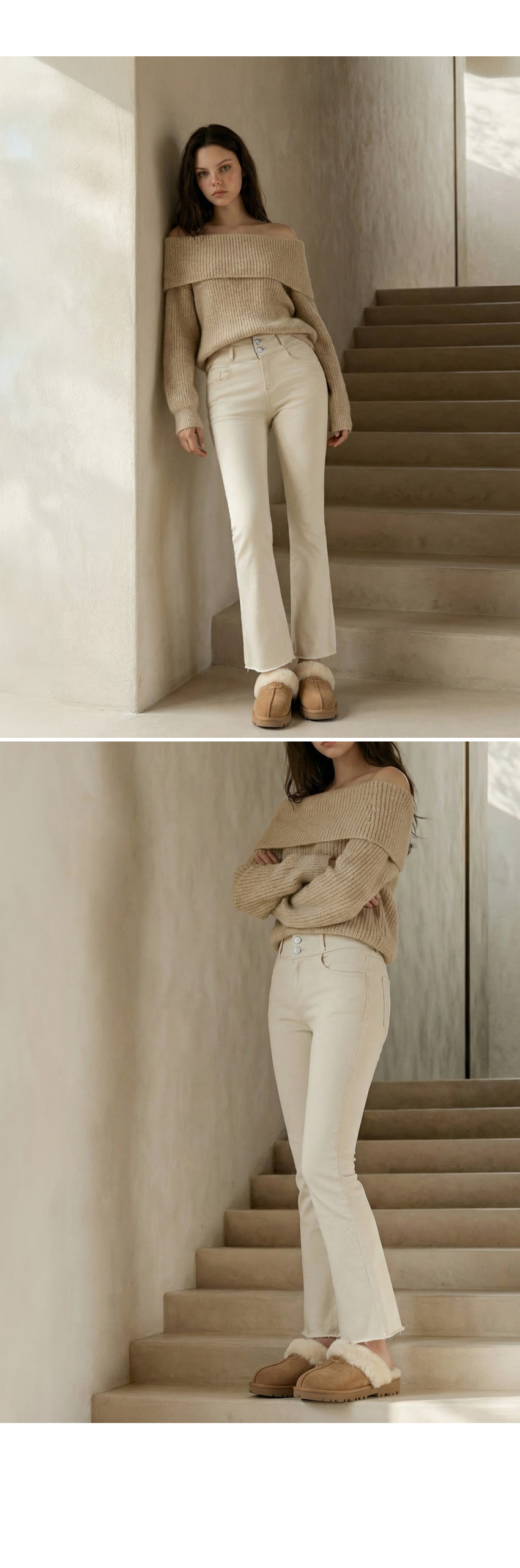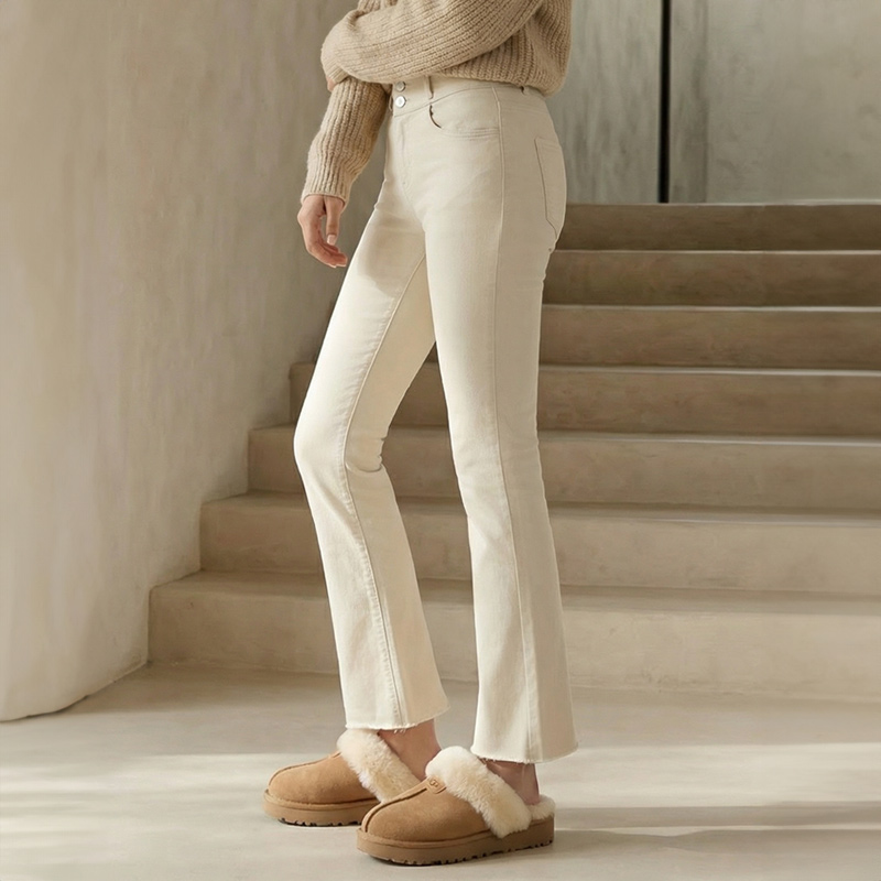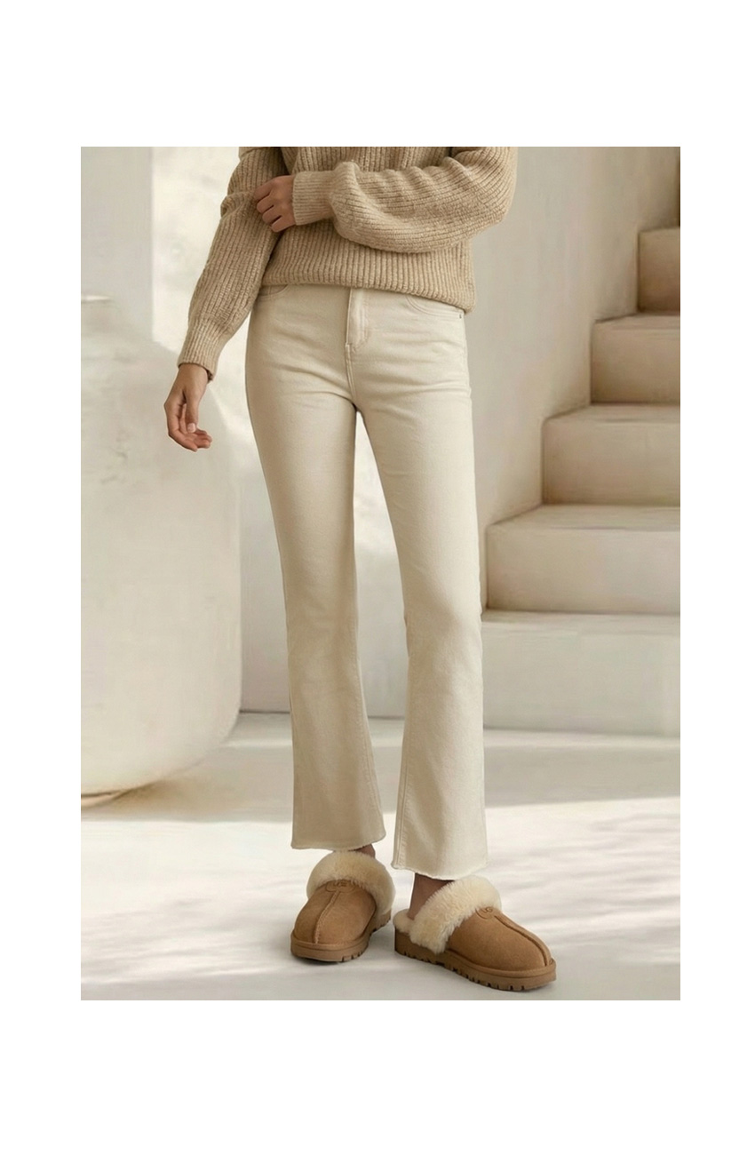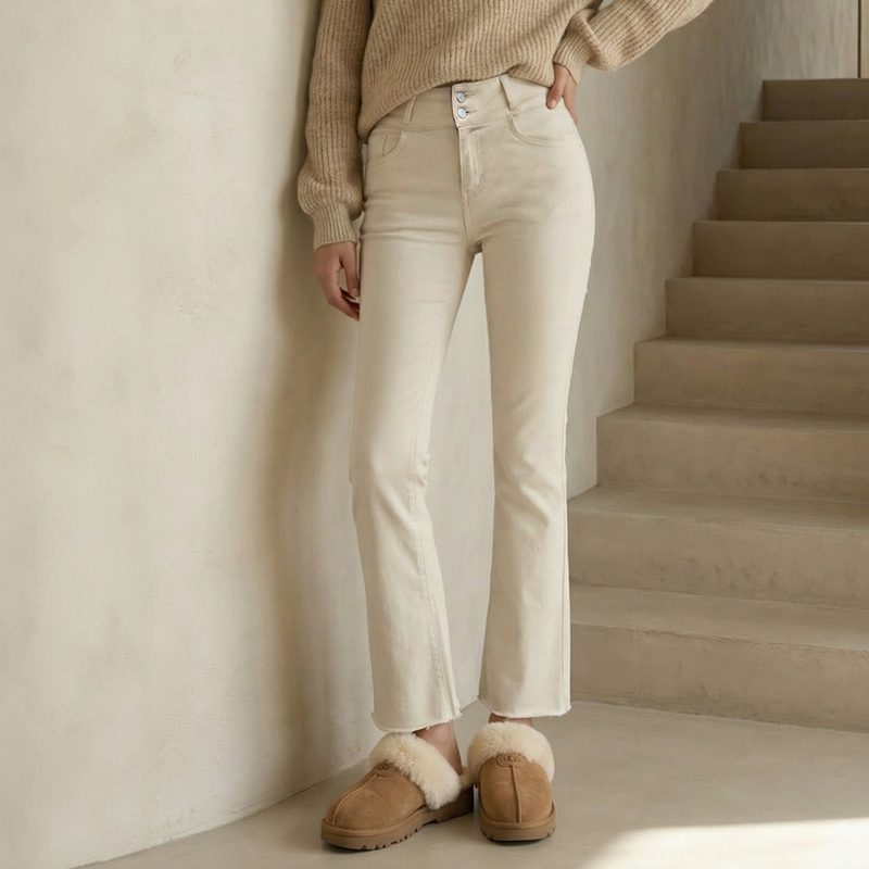 줄리아 투버튼 기모 세미부츠컷 팬츠