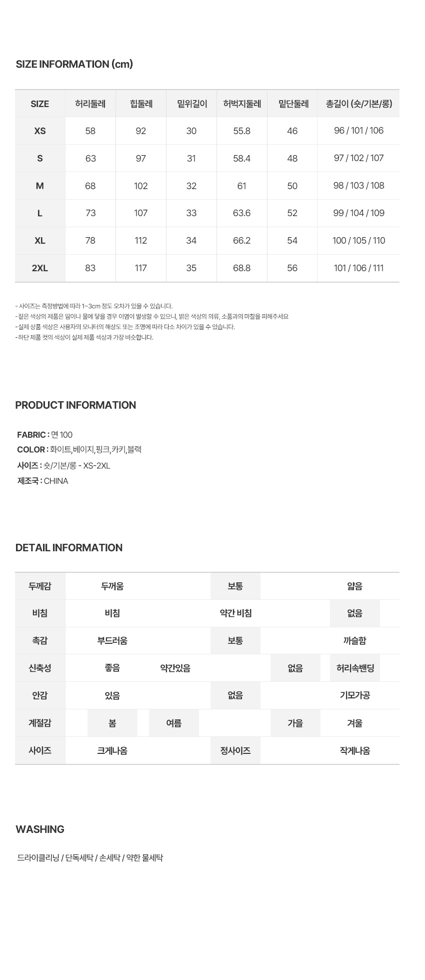 ※ 상품사이즈 치수는 재는 방법과 위치에 따라 1~3cm 오차가 있을 수 있습니다.