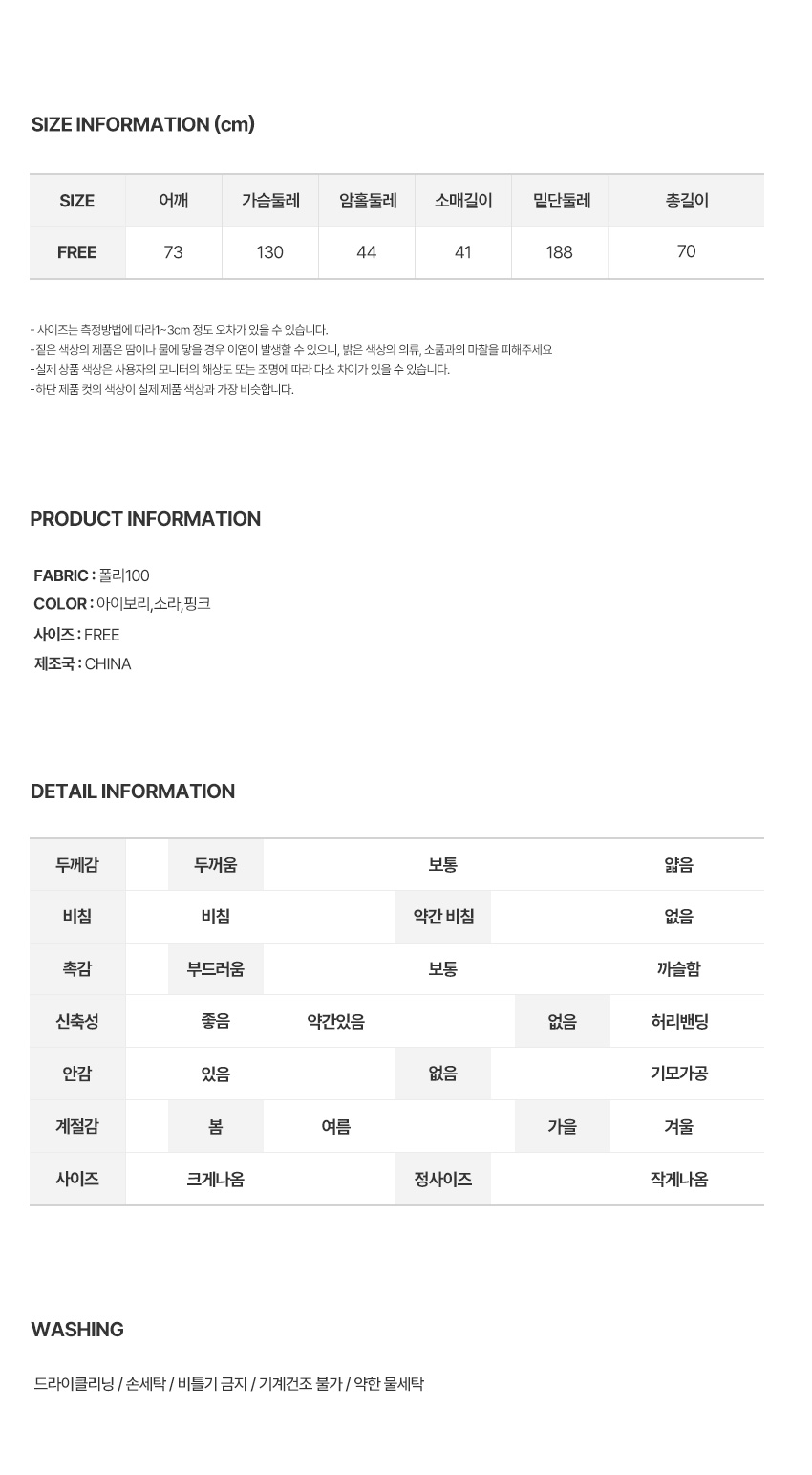 ※ 상품사이즈 치수는 재는 방법과 위치에 따라 1~3cm 오차가 있을 수 있습니다.