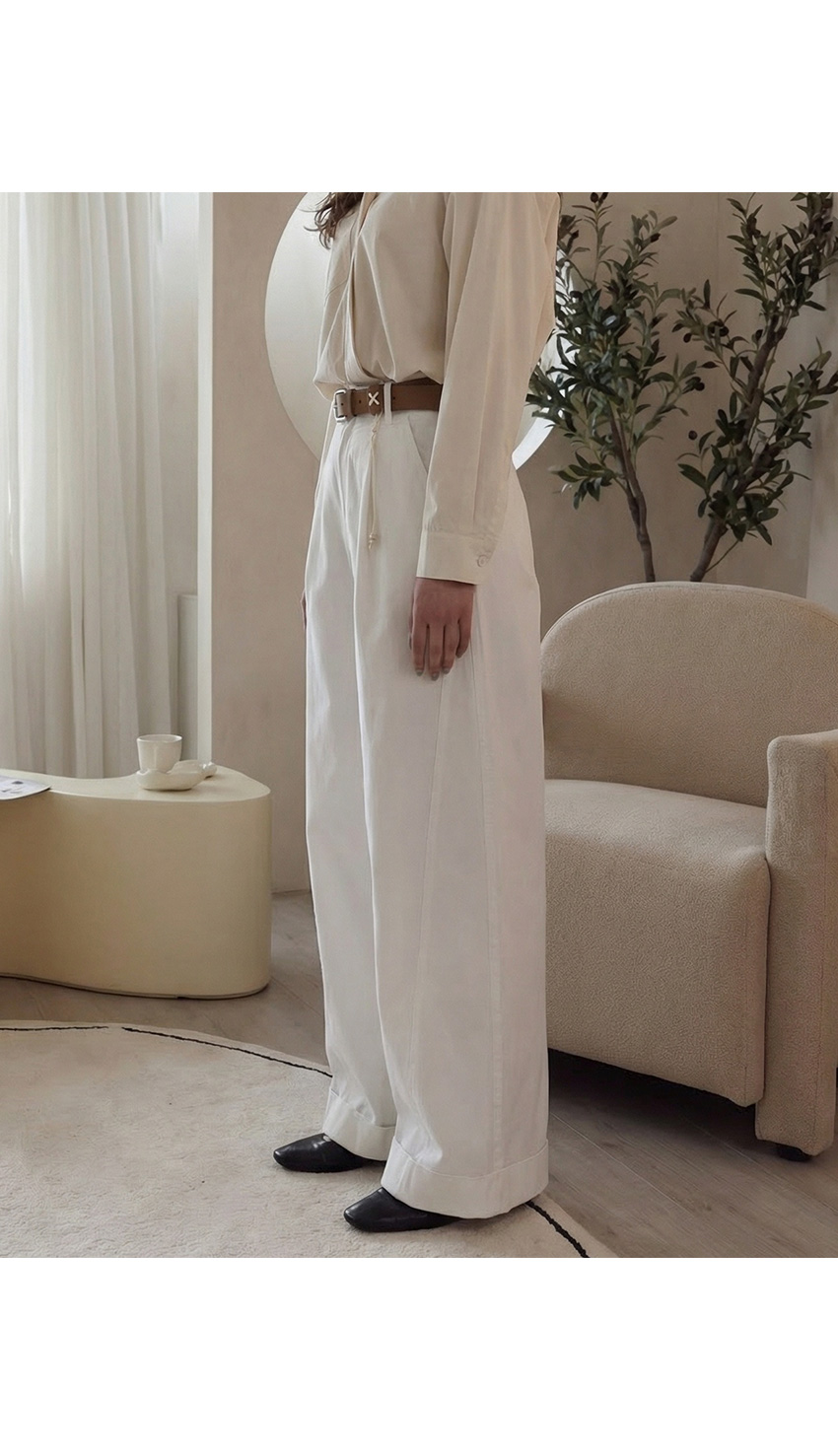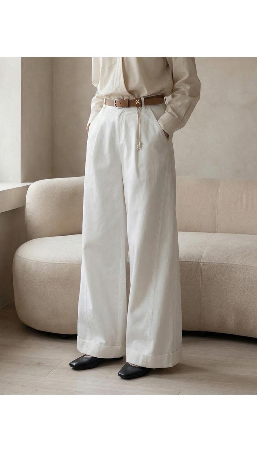 하린 벨트 와이드 팬츠