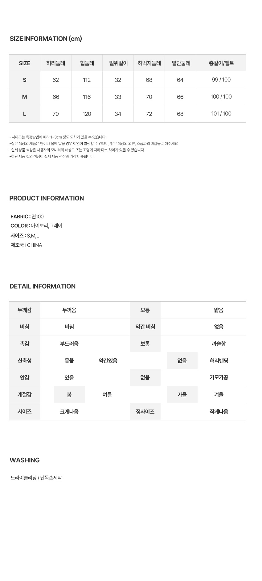 ※ 상품사이즈 치수는 재는 방법과 위치에 따라 1~3cm 오차가 있을 수 있습니다.