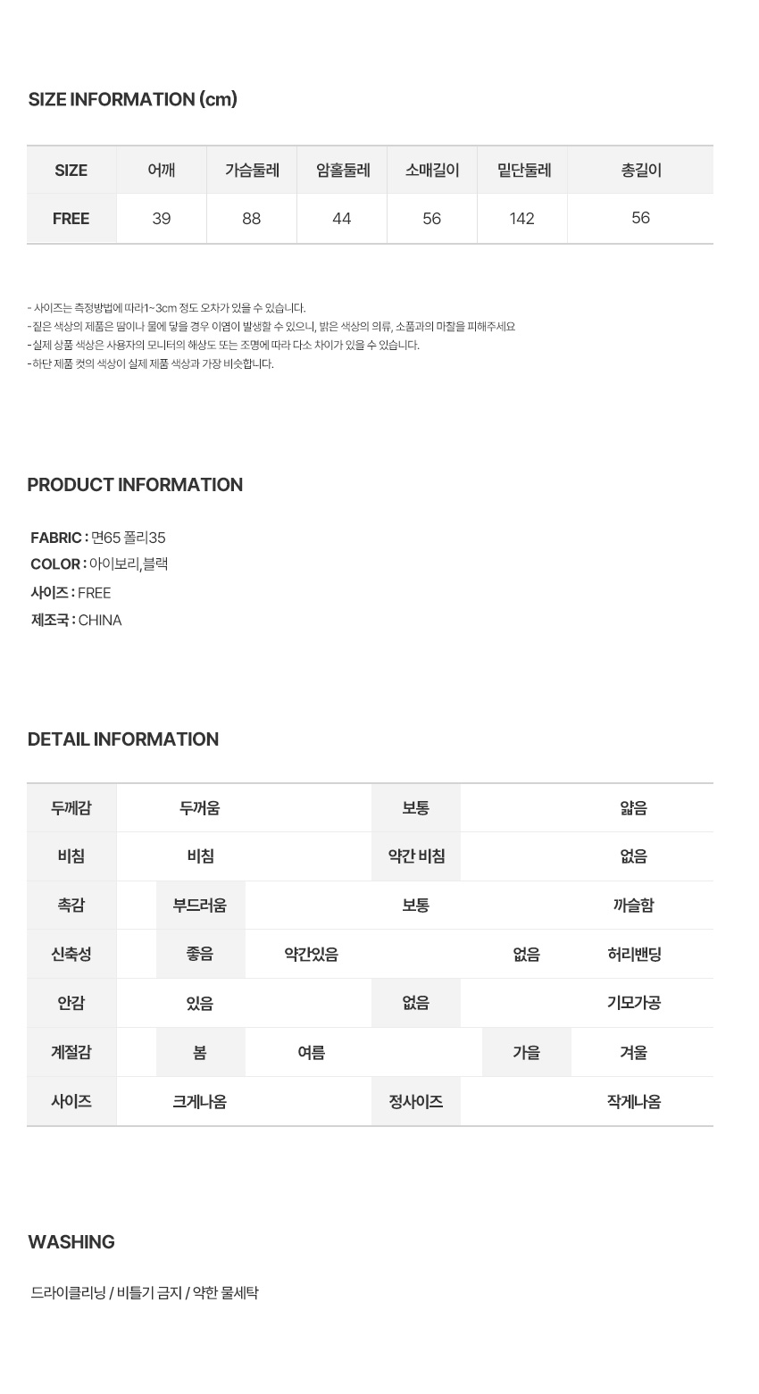 ※ 상품사이즈 치수는 재는 방법과 위치에 따라 1~3cm 오차가 있을 수 있습니다.