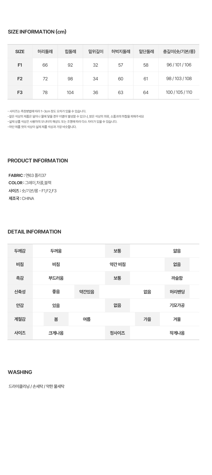 ※ 상품사이즈 치수는 재는 방법과 위치에 따라 1~3cm 오차가 있을 수 있습니다.