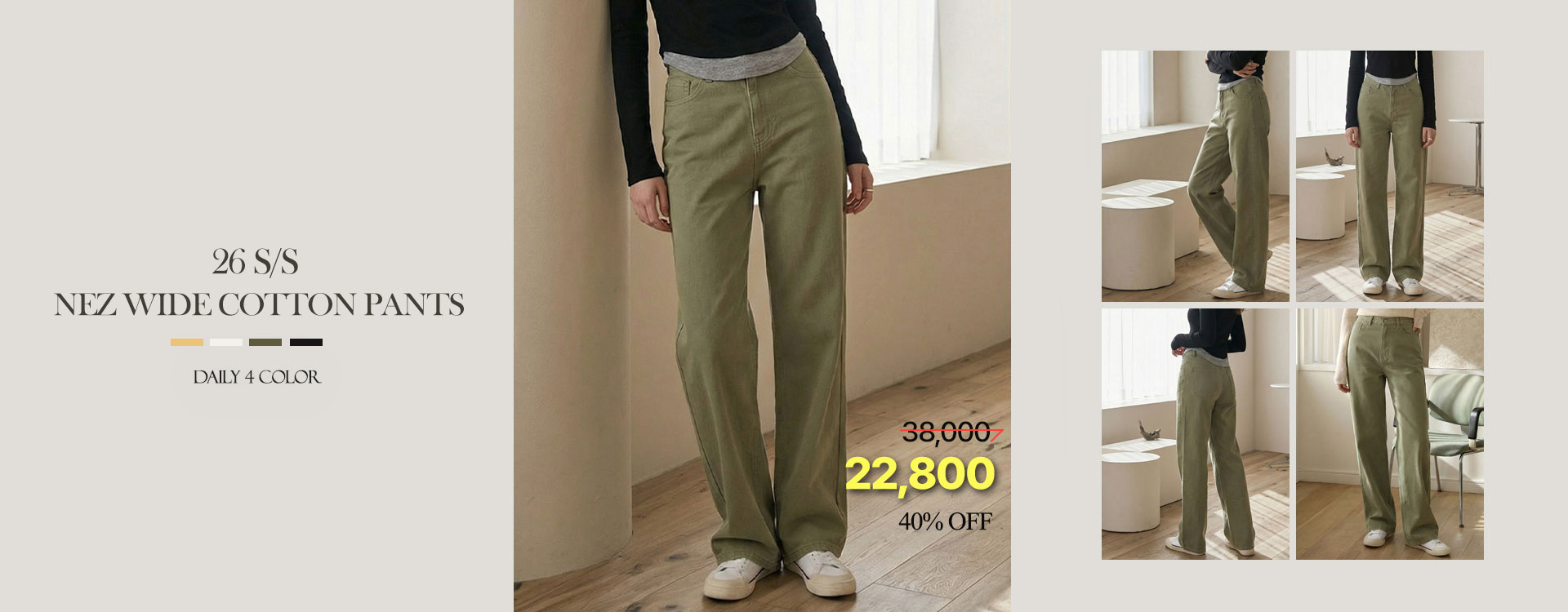 [26 S/S][3 type]오벨 코튼 와이드 팬츠