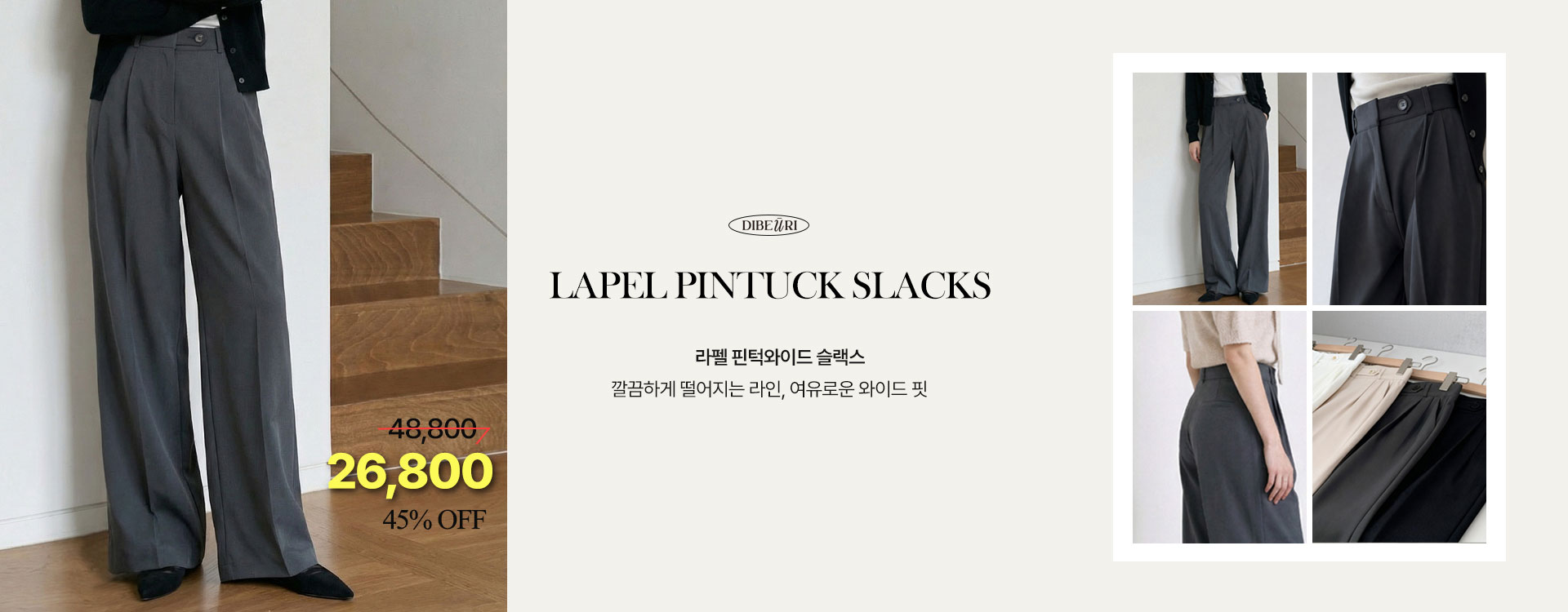 [26 S/S][3 type]라펠 핀턱 와이드 슬랙스