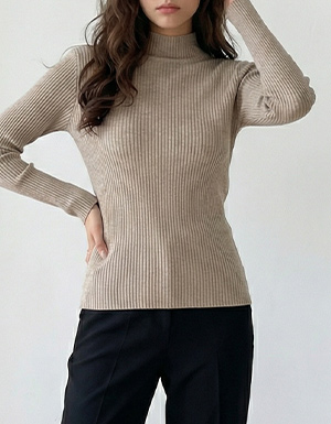 지아 골지 하프넥 티셔츠